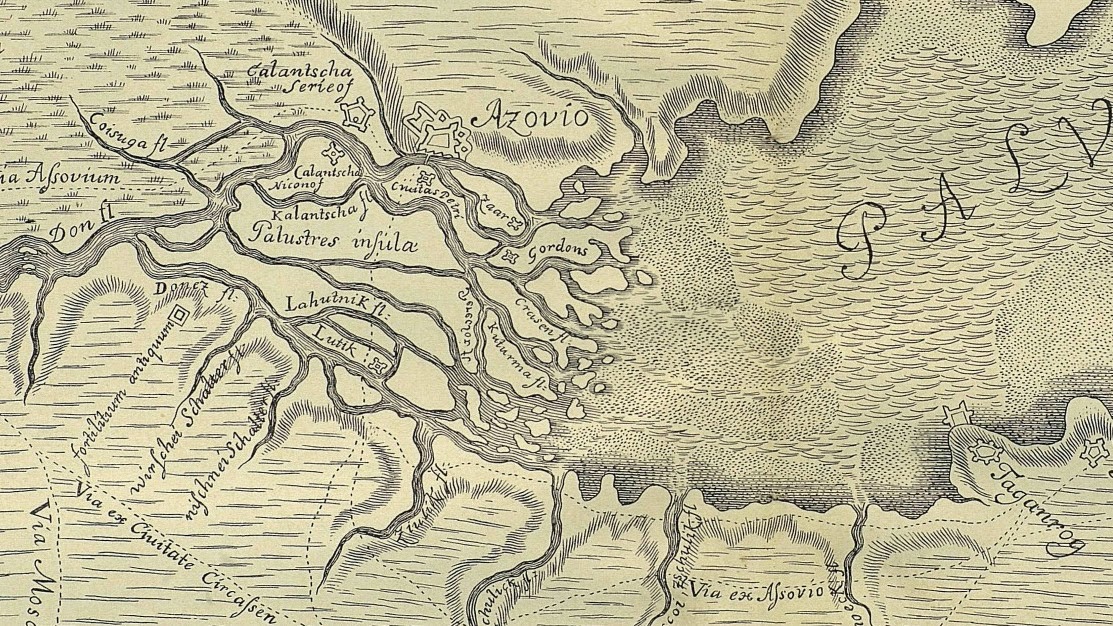 Дата и место издания: Амстердам, ок. 1720 г. Увеличение части Азова карты выше.