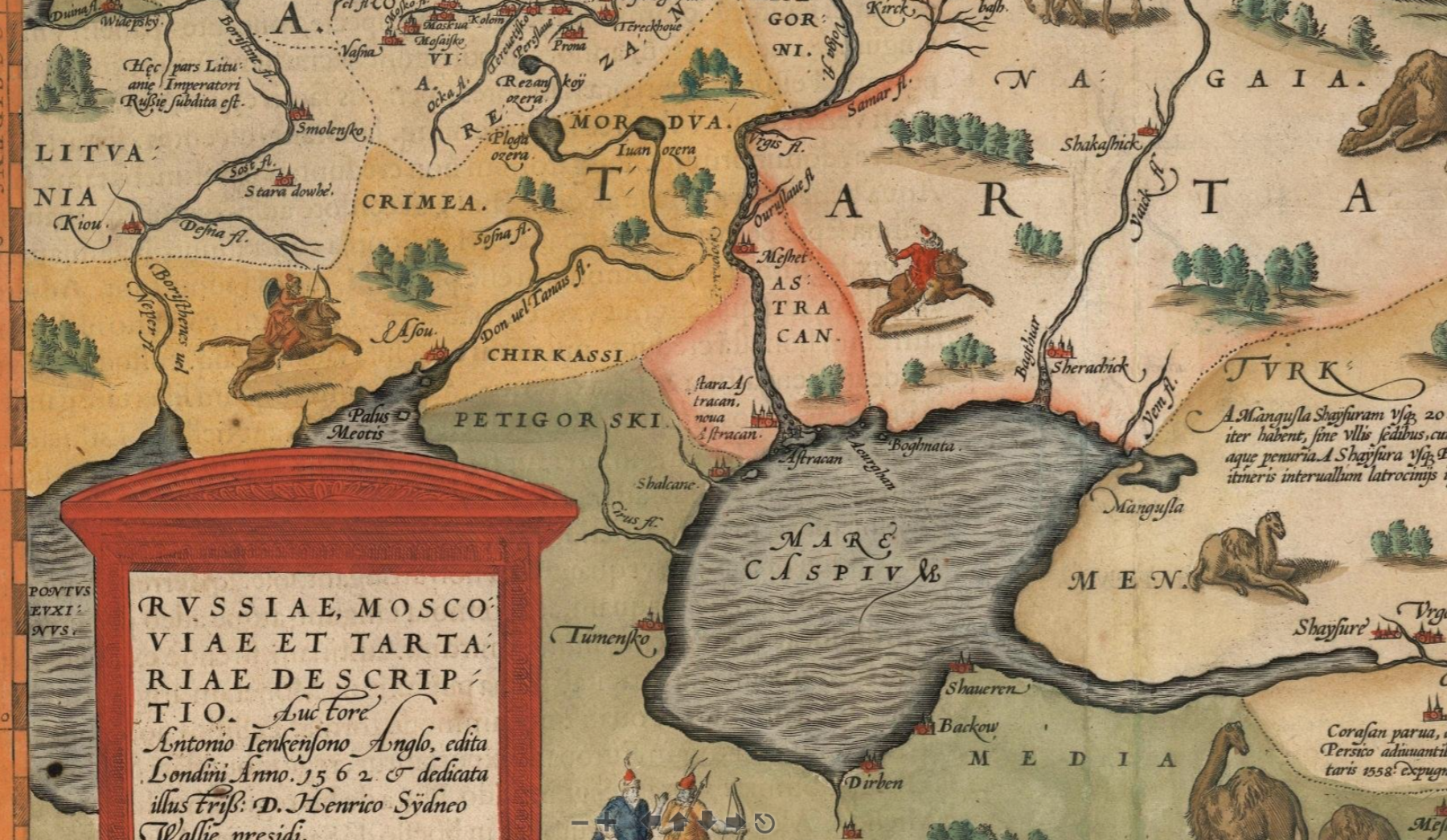 В 1558 году экспедиция Дженкинсона, снаряженная на средства Английской Московской компании, отправилась искать торговый путь из Москвы в Персию и Китай. Путешественник встретился с Иваном Грозным, который был в то время в районе Каспийского моря.