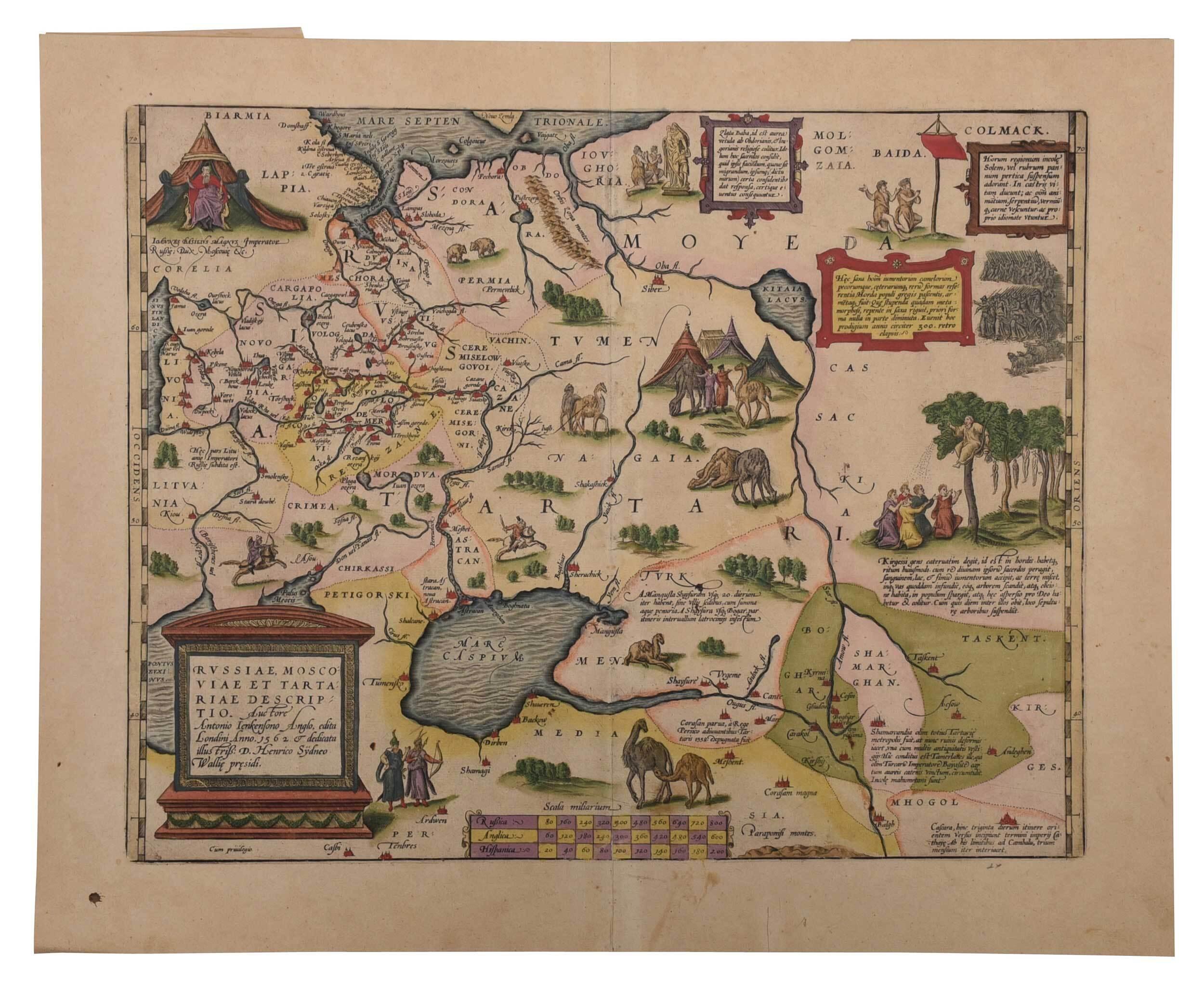 Старая карта России Авраама Ортелия (Ортелиуса) из знаменитого атласа Theatrum Orbis Terrarum, основанная на редкой карте России Энтони Дженкинсона, составленной в 1562 году.