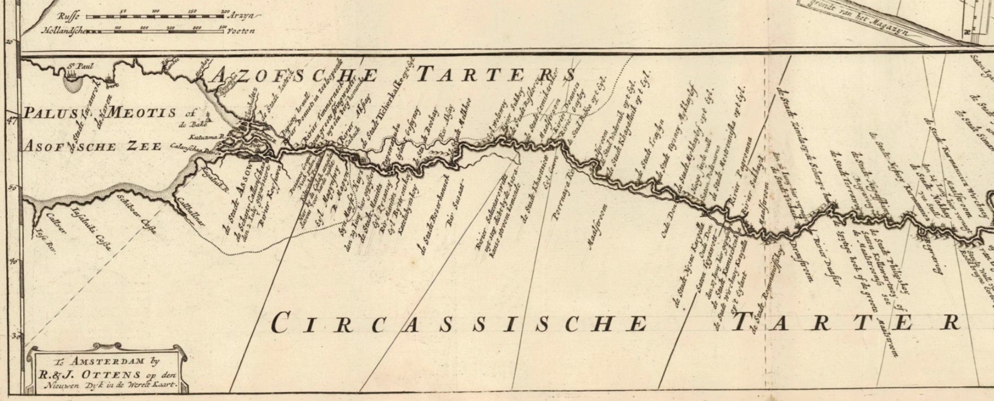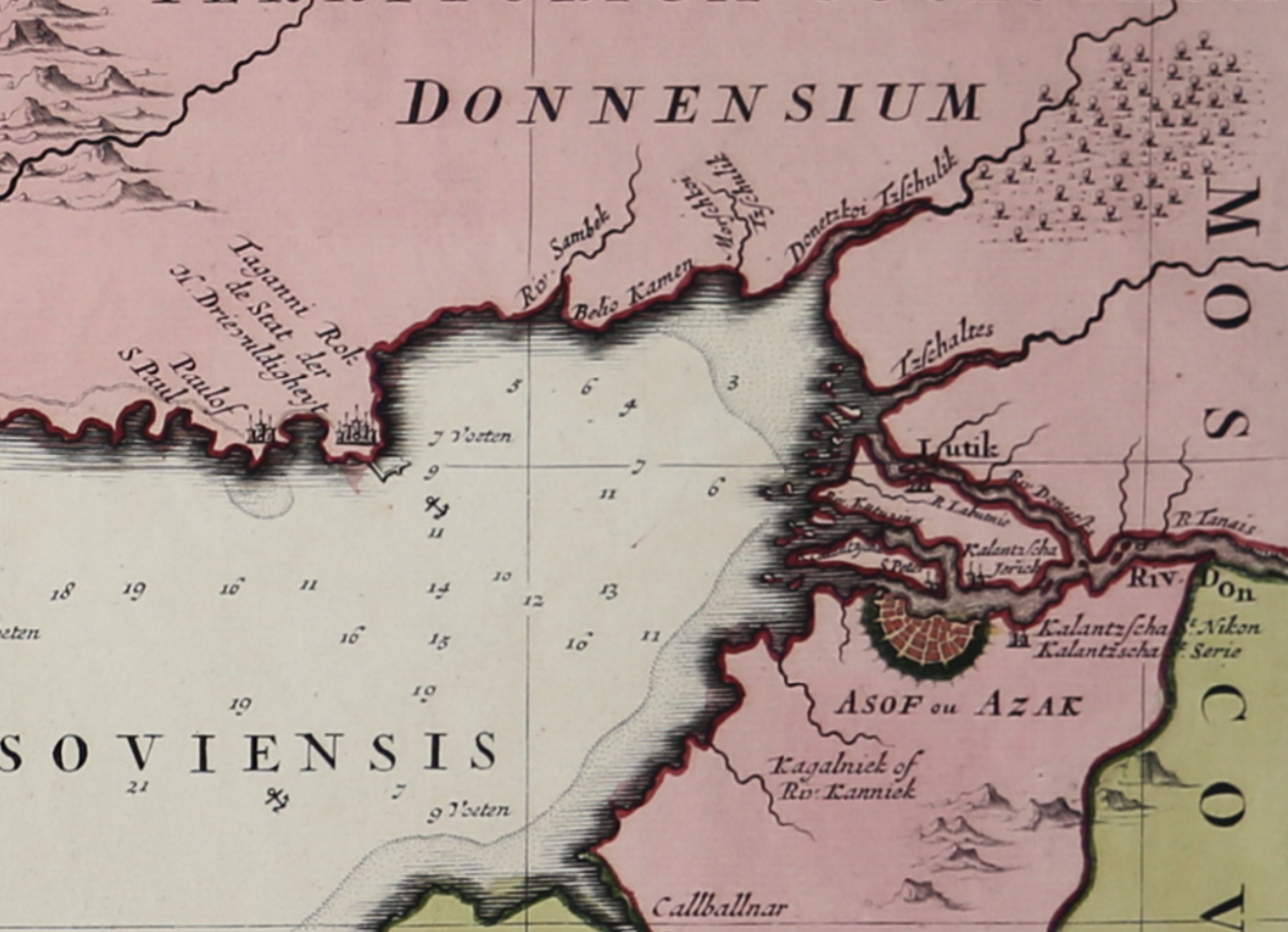 Дата и место издания: Амстердам, ок. 1720 г. Увеличение части Азова карты выше.